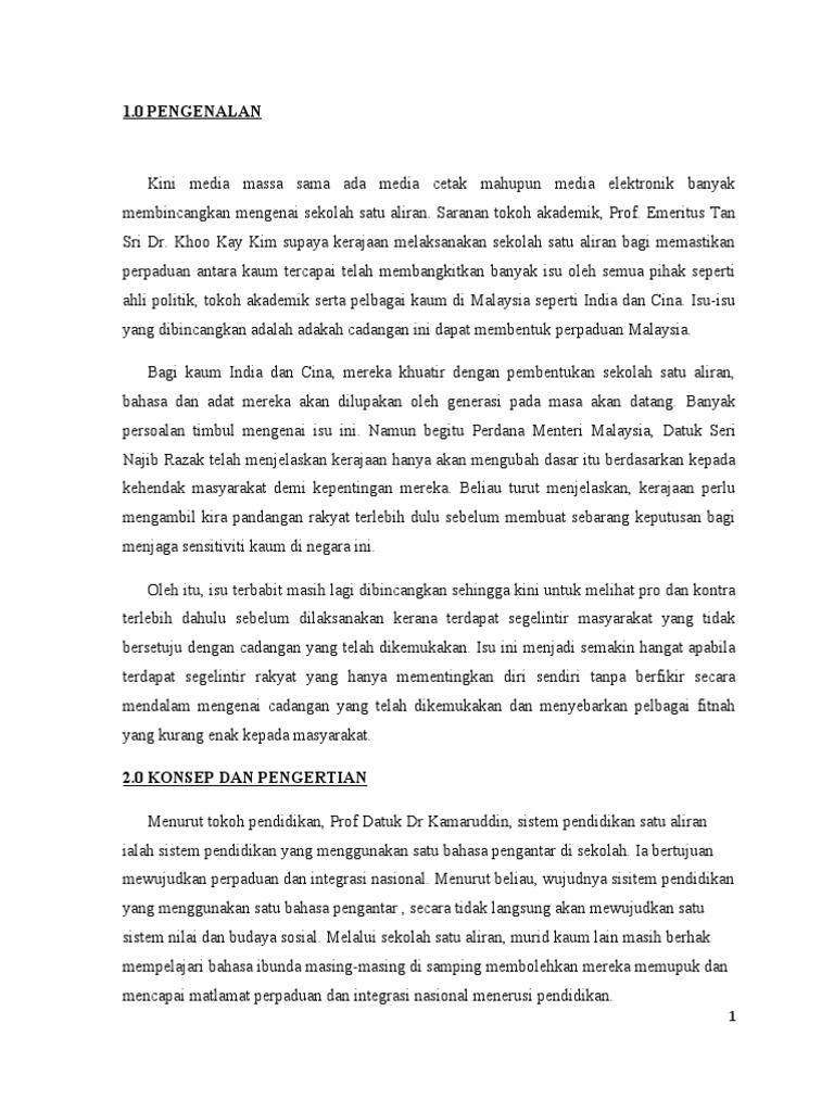 Penubuhan Sekolah Satu Aliran Pdf